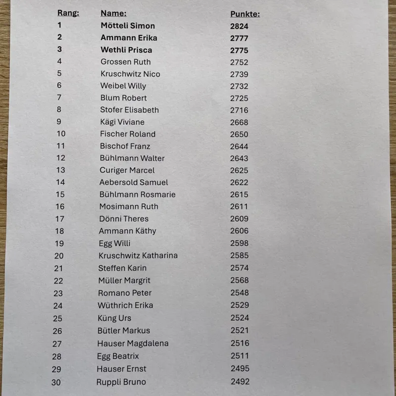 Am 7. November 2025 durften wir 52 JasserInnen am Turnier in Turbenthal empfangen. Unten findet Ihr die Rangliste der besten dreissig.